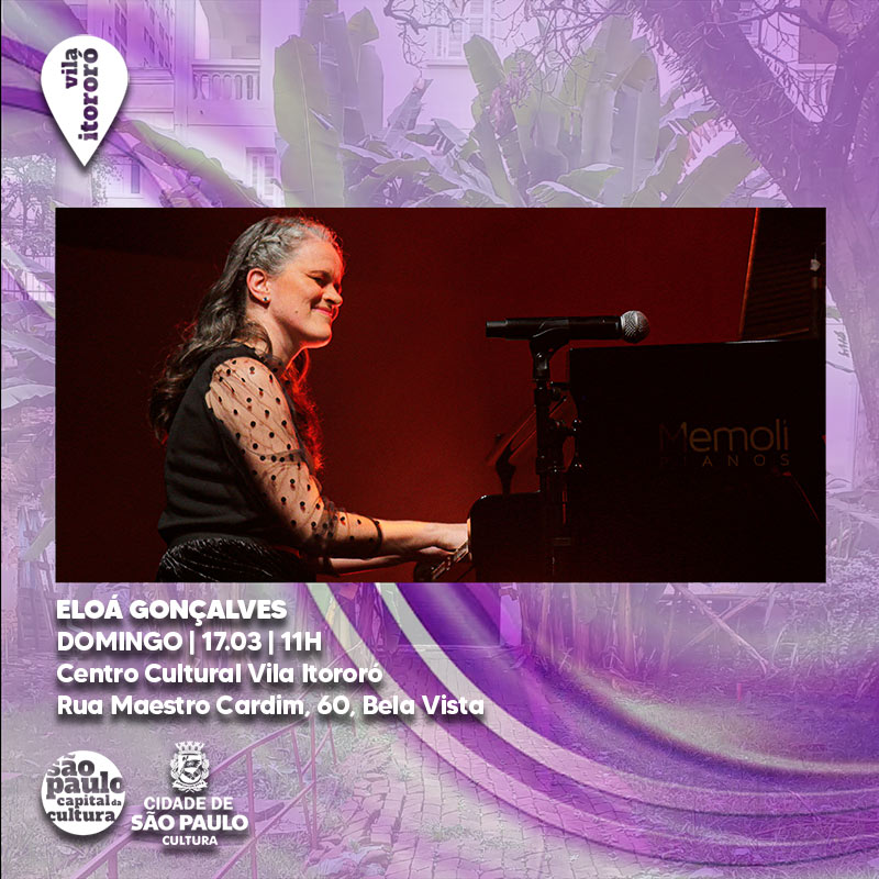 No show “Sobre o que move as coisas” a pianista e compositora Eloá Gonçalves apresenta o show de lançamento de seu novo álbum, “Sobre O Que Move As Coisas”. Reunindo a sonoridade do jazz aos ritmos e melodias brasileiras, a artista estará acompanhada pelos músicos Paulinho Vicente (bateria) e Iury Batista (contrabaixo), e pelos convidados especiais Tatiana Parra (voz) e Daniel D`Alcântara (flugelhorn).