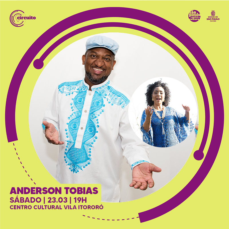 O sambista e intérprete Anderson Tobias apresenta sua Roda de Samba “Sambas, Batuques e Macumbarias”, uma apresentação que resgata sua ancestralidade e a cultura preta afro-brasileira, através de canções conhecidas, como: Ogum, Yao, Banho de fé, Banho de Manjericão, Canto de Ossanha, Falange de Erê, Firma o Batuque entre outras que embalam os terreiros de samba. Para esta roda não pode faltar a voz forte da mulher preta, assim, Tobias convida a sambista Yvani Coelho para cair no samba. Axé!