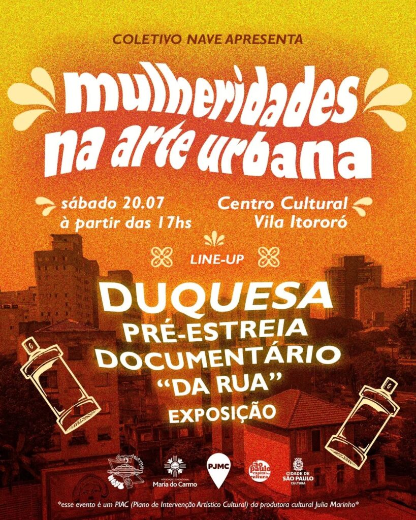 - Exposição: Destaca a diversidade da cultura urbana, com foco no papel das mulheres, em colaboração com o Coletivo NAVE.