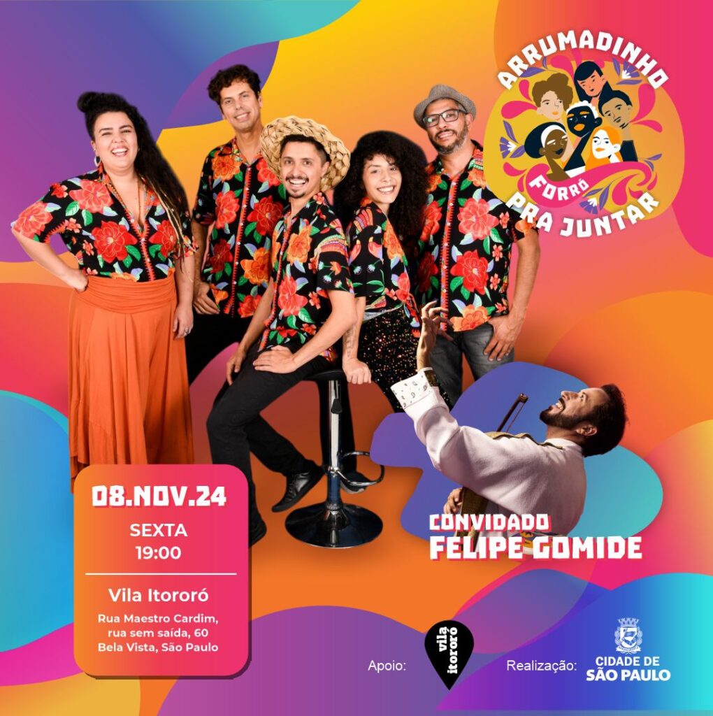 Forró pra Juntar é um coletivo que nasceu com o objetivo de valorizar as tradições nordestinas e promover a diversidade no cenário do forró. Formado por músicos experientes, o grupo se uniu a partir do projeto contemplado pela 4ª Edição do Programa Municipal de Fomento ao Forró. Com uma sonoridade autêntica, baseada na Rabeca e no Pife, o grupo realiza shows e oficinas gratuitas pela cidade de São Paulo, levando inclusão e cultura popular para públicos diversos.