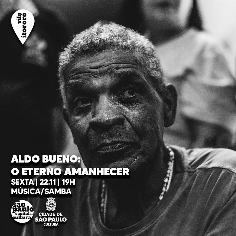 sexta, 22.11 | 17h às 18h30 – Roda de Samba | 19h – Exibição filme Aldo Bueno: O Eterno Amanhecer
