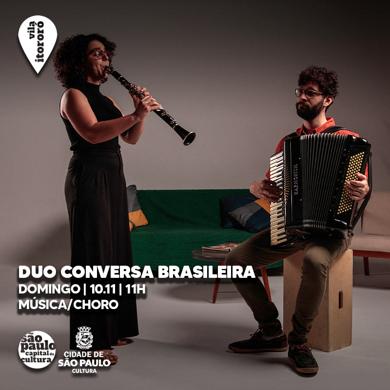 O duo Conversa Brasileira, formado por Vaisy Alencar (clarinete/clarone) e Marcos de Sá (acordeon/piano), faz o show de estreia de seu primeiro álbum “Prosas”, com um repertório que coloca, lado a lado, o acervo brasileiro de música de câmara e peças de compositores populares arranjadas para a sua instrumentação. A apresentação traz obras de Léa Freire, Sivuca, Carol Panesi, Villani-Côrtes, Luísa Mitre e Fabio Leal.