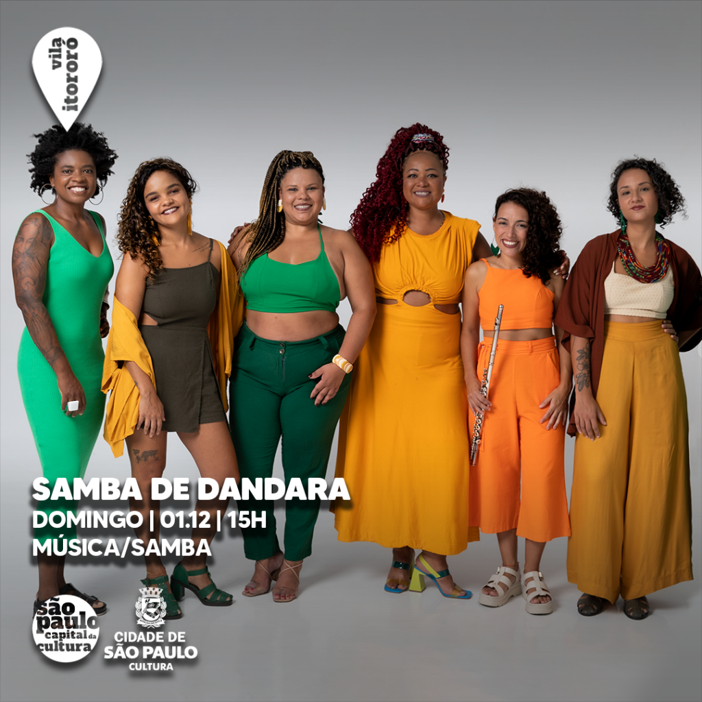Samba de Dandara é samba de empoderamento e exaltação às mulheres sambistas, às grandes compositoras, às grandes intérpretes, às guerreiras do samba. A concepção de Samba de Dandara carrega o peso e a inspiração de Dandara, mulher negra, guerreira e referência histórica na luta contra a escravização. Carregar esta marca significa enaltecer e promover a resistência feminina e negra sob a forma de uma representação musical que passeia por ritmos afro-brasileiros, sobretudo o samba em suas diversas vertentes, além de ijexás, afoxés, pontos de candomblé e umbanda. Fundada em 2012, a banda propõe debates sobre ancestralidade e protagonismo feminino no samba e na sociedade.