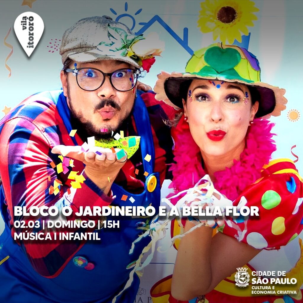 Bloco O Jardineiro e a Bella Flor – Prepare-se para um Carnaval cheio de cores, alegria e música que celebra a infância e a vida! O Jardineiro e a Bella Flor é uma dupla de música infantil que transforma histórias em canções contagiantes, envolvendo o público com ritmos vibrantes e mensagens positivas.