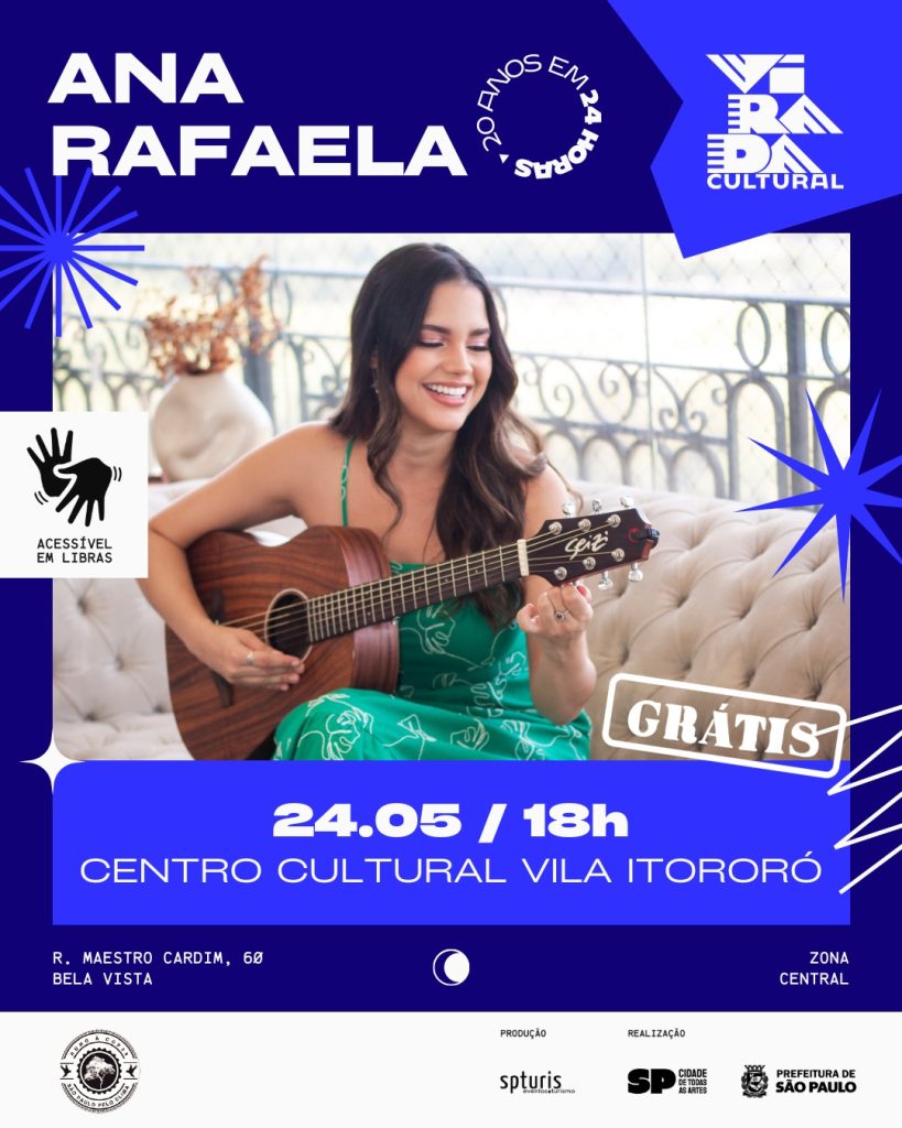 Ana Rafaela traz em seu repertório diversos ritmos brasileiros contemplando cada região do país, de norte a sul. Cantando canções conhecidas do grande público como Tocando em Frente e Anunciação a artista traz interpretações singelas e envolventes. Você vai conhecer o Brasil através desse repertório multicultural.