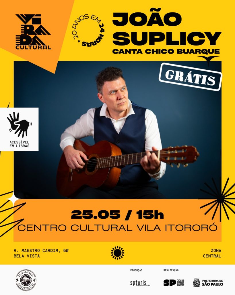 João Suplicy inicia em 2025 uma turnê no interior de São Paulo e capital, homenageando Chico Buarque com um espetáculo “João canta Chico”. O cantor e compositor interpreta clássicos como Olhos nos Olhos e João e Maria, além de sambas, como O Meu Guri, Geni e o Zepelim e Samba e Amor. Com uma sonoridade rica, acompanhada de percussão e baixo acústico, além de convidados especiais, Suplicy compartilha histórias pessoais sobre as músicas de Chico. A turnê promete encantar os fãs, celebrando o legado do maior nome da música brasileira de forma emocionante e intimista.