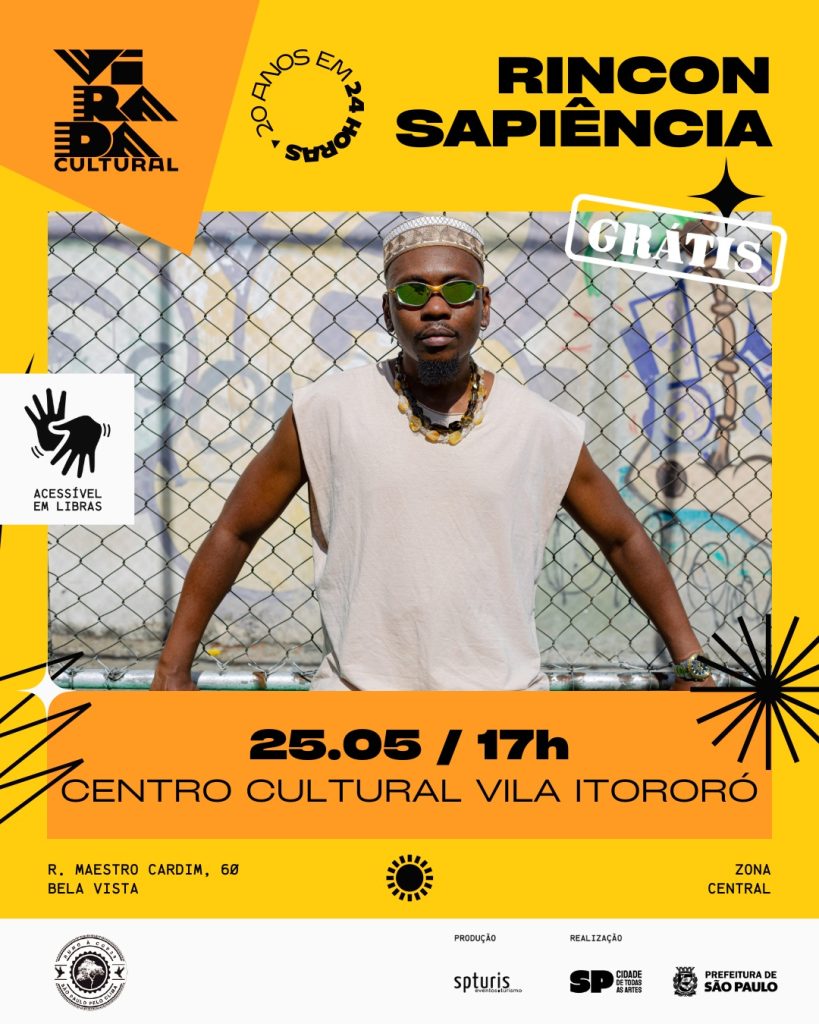 Rincon Sapiência canta músicas do seu segundo álbum de carreira, intitulado “Mundo Manicongo: Dramas, Danças e Afroreps”, onde o artista viaja pelos mais diversos ritmos, norteado pela musicalidade de vertentes da música pop contemporânea africana. Com instrumentais dançantes e divertidos, uma das marcas de sua nova fase, o disco é o primeiro lançado pelo seu selo próprio, o MGoma, e disponibilizado em todas as plataformas de streaming e no YouTube. O álbum conta com as participações de Mano Brown, Lellê, Rael, Gaab, do grupo ÀTTØØXXÁ, Duquesa e do coletivo de Mc’s Audácia, integrado por ele. O novo trabalho expõe a evolução de Rincon como artista e produtor musical, que assina toda a produção e direção do trabalho, no qual se desprende da veia clássica predominante no multipremiado Galanga Livre (2017), seu disco de estreia.Em “Mundo Manicongo: Dramas, Danças e Afroreps”, Rincon bebe na fonte de estilos africanos mais variados, desde o afrobeat e o afrohouse, até o dundunba, ritmo originário da Guiné e divulgado ao redor do mundo pelo mestre djembefolá Famoudou Konatè. Abusando da psicodelia e com uma pegada menos orgânica, no disco também se destaca o diálogo com ritmos originários das periferias, como o pagodão baiano e o funk brasileiro – desde o Mandela até o 150 bpm – e indo até o grime inglês.Rincon também vai cantar algumas músicas do seu álbum multimpremiado “Galanga Livre” e singles lançados até o ano de 2024.