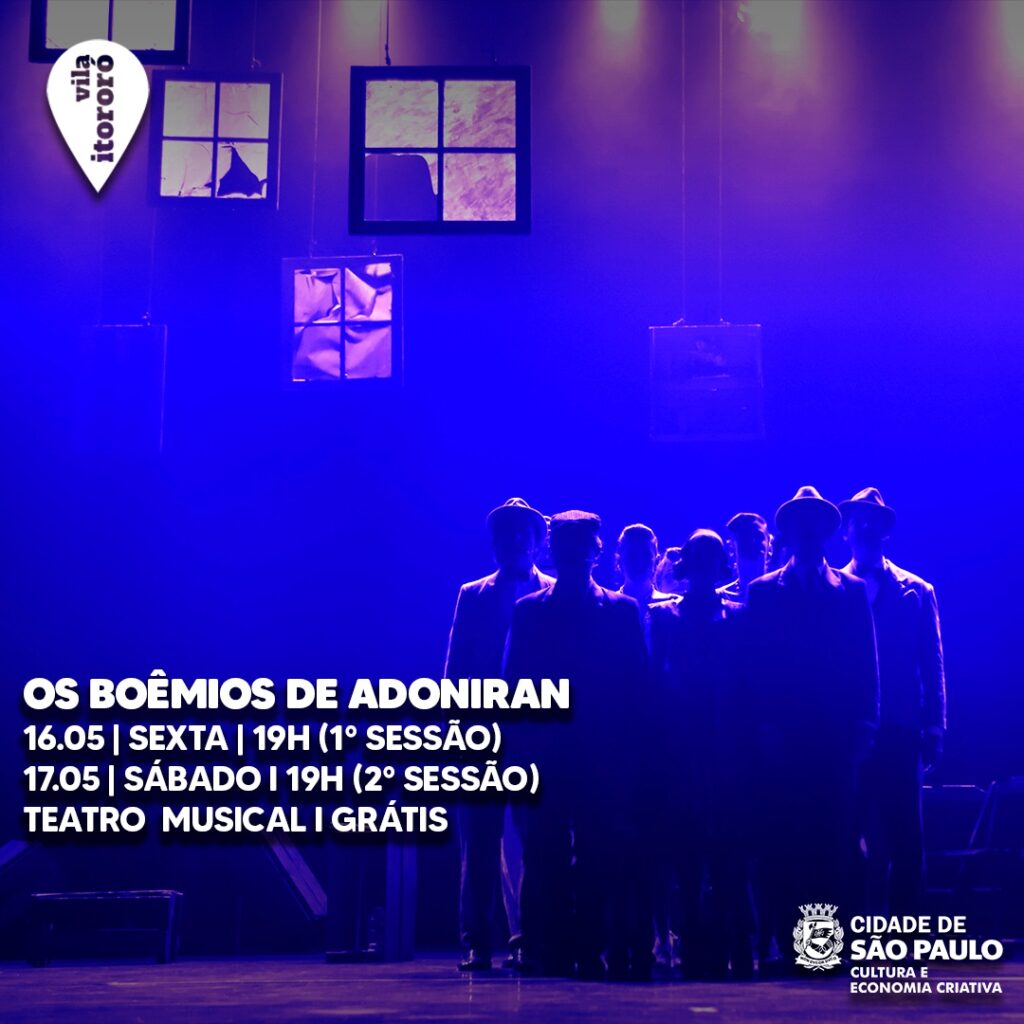 O musical Os Boêmios de Adoniran trata-se de um espetáculo que visa o resgate e a difusão da história do samba paulistano para o público em geral. Através das composições de Adoniran Barbosa e de uma história emocionante, jovens, adultos e idosos têm a oportunidade de conhecer um pouco mais da cidade de São Paulo. Com um elenco de grande talento e com uma qualidade musical de altíssimo nível, o espetáculo foi destaque nos principais e mais respeitados guias de cultura da cidade de São Paulo, se consagrando com sessões sempre lotadas e um grande sucesso de público e críticas. Redes: https://www.instagram.com/osboemiosdeadoniran/