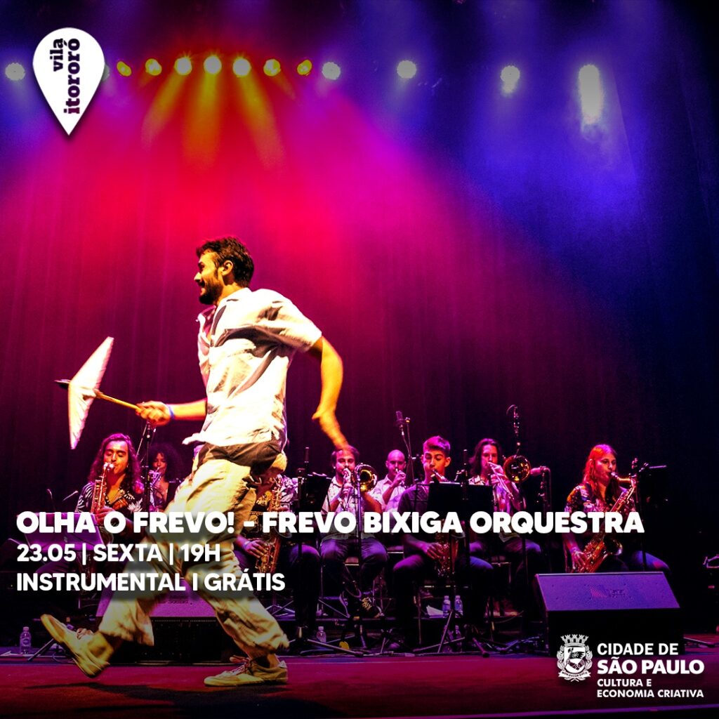 Frevo Bixiga Orquestra é uma das raras orquestras paulistanas dedicadas ao frevo. Formada por 13 musicistas e um passista, seus integrantes atuam como membros fixos em projetos como Brasil Jazz Sinfônica, Fios de Choro, Horoyá, La Caravana Orquestra e Orquestra Furiosa. Com um pé na tradição e outro na modernidade, a orquestra evoca em seu show de estreia “Olha o frevo!” desde agrupações clássicas de grandes mestres como José Menezes, Duda e Zacarias até o frevo-jazz do maestro Spok. Show-celebração ao frevo, música instrumental brasileira cria de Pernambuco que é sinônimo de carnaval e patrimônio imaterial da Humanidade, tocada agora ao vivo também em São Paulo. Participação especial da cantora Paula Sanches. Redes: https://www.instagram.com/frevobixiga/