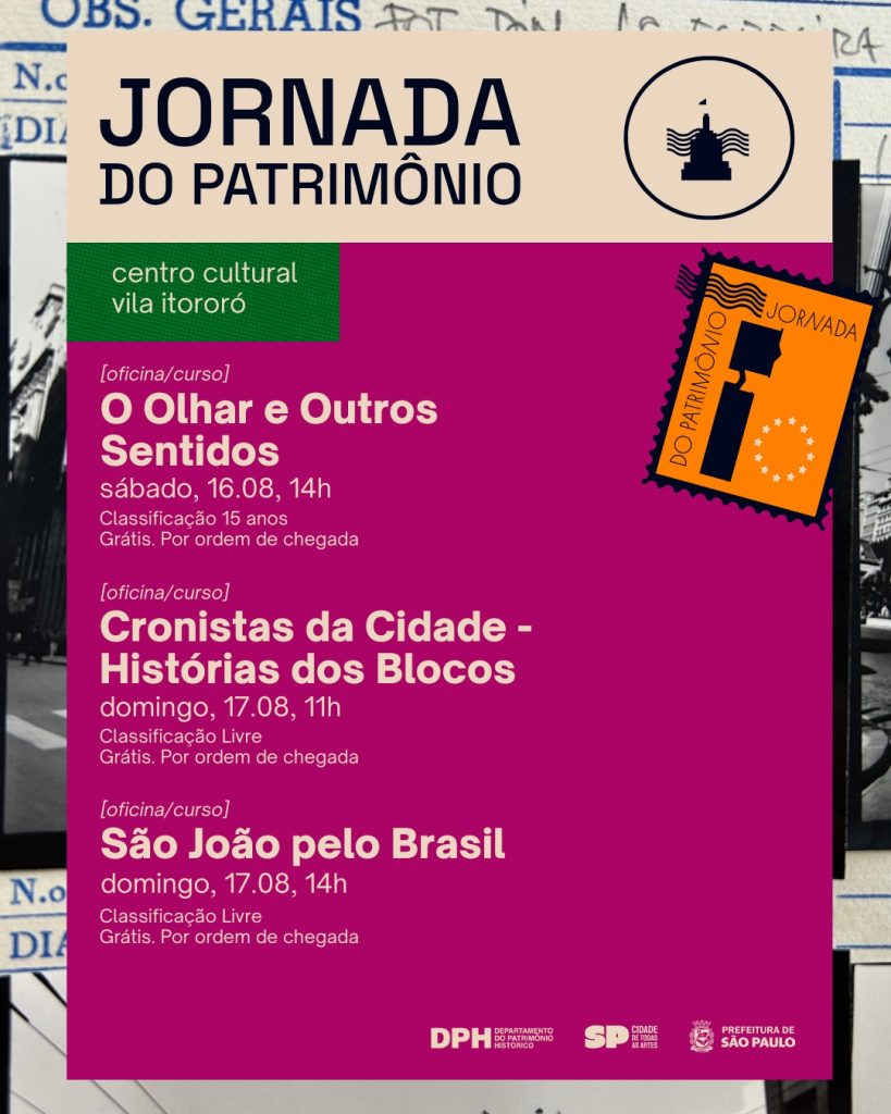 Dentro da Jornada do Patrimônio 2025, o curso “ Olhar e outros sentidos: o registro de Patrimônios Históricos ” abordará de maneira sucinta, as maneiras de elaboração visual com equipamentos fotográficos e celulares analisando, entre outros, a composição, a direção da luz, a fotometria, as visitas, o planejamento na realização das imagens, a otimização em termos de abordagem na elaboração das fotos e o trabalho de alguns fotógrafos que atuam junto a esta temática.