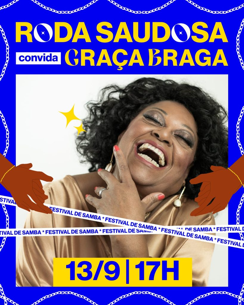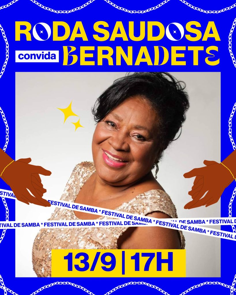 15H Apresentação do grupo Samba de Dandara I 16H DJ Vivian Marques I 17H Roda Saudosa, participação especial Bernadete e Graça Braga