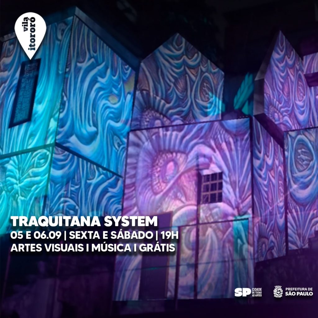 TRAQUITANA SYSTEM, espetáculo que une soundsystem à videomapping em impactantes apresentações ao vivo, chega às ruínas da histórica Vila Itororó com música, luz e cores projetadas para encerrar a série de apresentações do Coletivo Provisório Permanente, dirigido pelo músico e artista visual Craca Beat. Formado por artistas brasileiros e imigrantes o coletivo que atua desde 2023 convida mais uma vez a cantora iraniana Mah Mooni para entoar canções persas antigas ou cantos de protesto como Zan Zendegui Azadi (muher vida e liberdade) o grito feminista que se fez ecoar pelo mundo após o assassinato da jovem Masha Amini pela policia da moralidade iraniana, ao não vestir corretamente seu hijab. A céu aberto e no centro da cidade, um espetáculo ao mesmo tempo artesanal e tecnológico em interação com a arquitetura e a história de São Paulo.