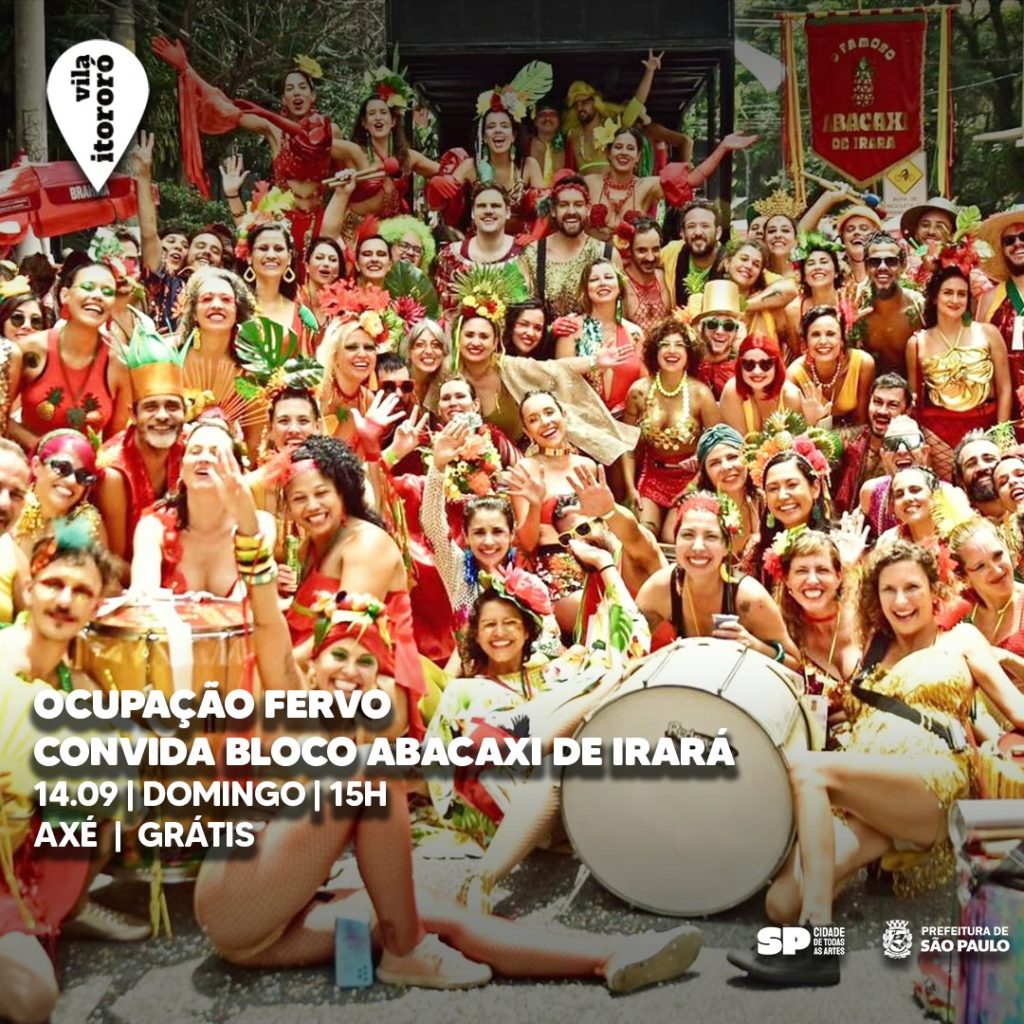 Desde 2020, o Bloco Abacaxi de Irará toma as ruas de Perdizes, bairro da zona oeste de São Paulo, para homenagear um ícone do tropicalismo, baiano de Irará que adotou São Paulo como morada e inspiração para a sua produção musical: o músico e compositor Tom Zé. Com arranjos criativos e inusitados, a trupe faz versões carnavalescas de composições clássicas como Angélica, Augusta e Consolação, Vai (Menina Amanhã de Manhã), Todos os Olhos, Frevo e Xiquexique. O bloco é formado por músicos profissionais e amadores, tem uma bateria completa, um potente time de sopros e vozes que conduzem o público por uma jornada carnavalesca única.