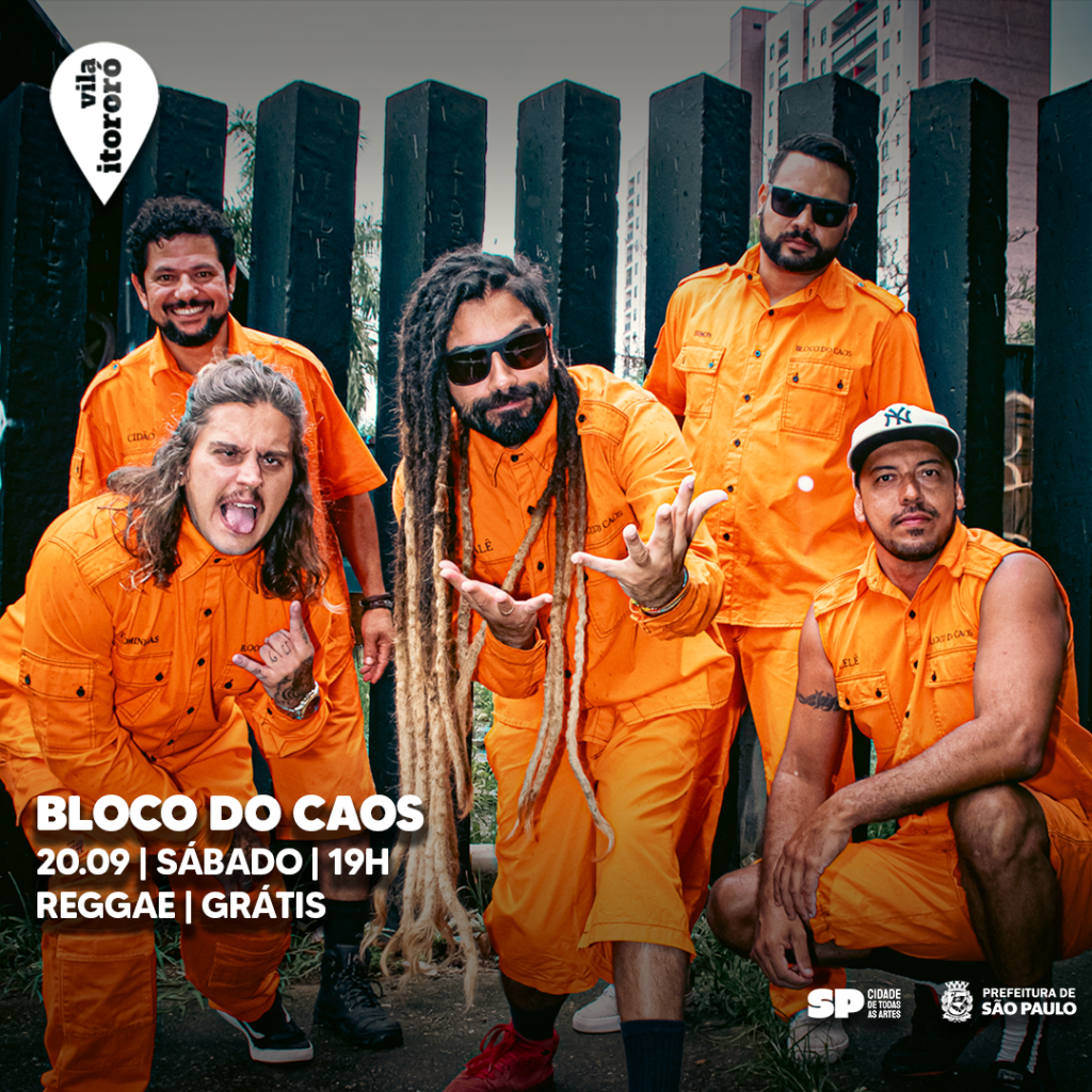 O Bloco do Caos, conhecido por suas letras reflexivas e mensagens de transformação, apresenta um projeto inédito que combina versões e músicas autorais, com foco no lançamento do EP Nosso Canto. Este EP homenageia o reggae brasileiro, revisitado com a assinatura única da banda, que mistura afrobeat, samba reggae, maracatu, cumbia e elementos eletrônicos, criando faixas vibrantes. Além das versões de clássicos do reggae, o EP traz músicas autorais, incluindo a inédita “Nosso Canto”, síntese da essência da turnê. Nos shows, o Bloco vai além do EP, reinventando clássicos do reggae, rock e da música brasileira, como Cidade Negra, O Rappa, Charlie Brown Jr, Natiruts e Skank. Cada performance transforma essas canções em experiências dançantes e envolventes, conectando gerações. A energia do carnaval está presente em batuques, swing e ritmos globais, criando uma celebração coletiva onde o público é parte central do espetáculo. Redes: http://www.instagram.com/blocodocaos