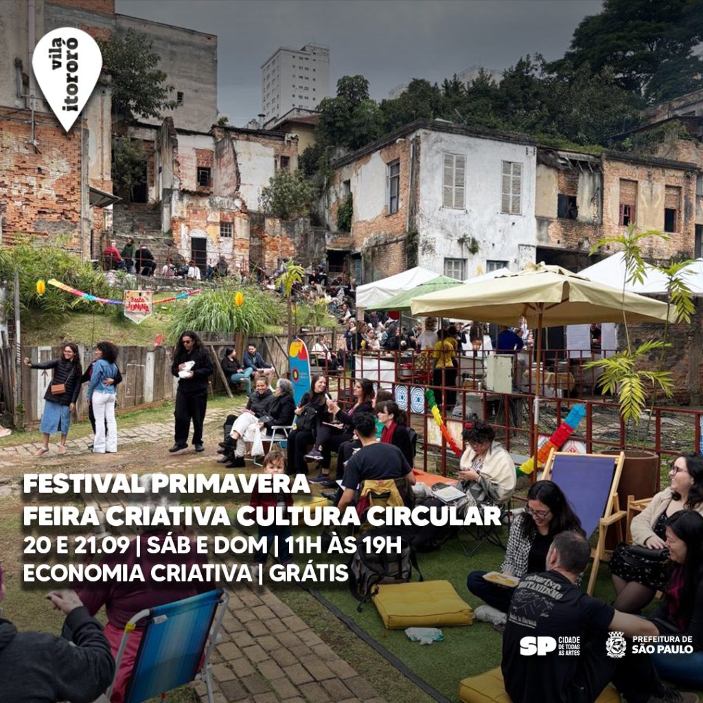 A cultura circular chega ocupando a Vila itororó novamente agora para celebrar a chegada da estação mais colorida do ano com dois dias de programação intensa e gratuita! O Festival de Primavera reúne cultura, arte, gastronomia, economia criativa e música em um espaço histórico. Com uma curadoria diversa, o evento promove a circulação de saberes e talentos locais, reunindo artistas, expositores, coletivos e empreendedores que transformam a cidade com criatividade e afeto. Venha viver a primavera com a gente: circular, encontrar e também florescer, 2 dias de arte, encontro e celebração!