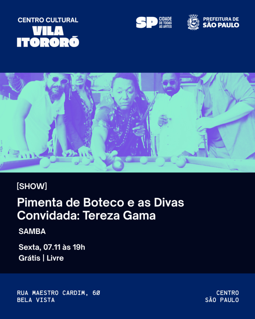 O projeto “Pimenta de Boteco e as Divas” reúne o melhor do samba e do samba-rock em um show vibrante, cheio de suingue, bom humor e energia contagiante. Convidando a talentosa cantora Tereza Gama para integrarem o espetáculo, a proposta celebra a força e a versatilidade da música brasileira. Com performances marcantes e um repertório envolvente, o show promete conquistar o público, promovendo momentos de alegria e descontração. O projeto busca resgatar e enaltecer as raízes culturais do samba, ao mesmo tempo em que dialoga com a contemporaneidade do samba-rock, criando uma experiência musical única e cativante. Redes: https://www.instagram.com/pimentadeboteco/