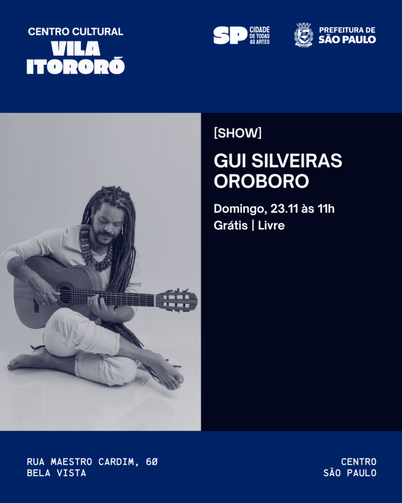 O violonista e compositor Gui Silveiras apresenta o show instrumental “OroborO”, tendo como convidada especial a clarinetista Vaisy Alencar, combinando a ancestralidade musical brasileira à expressão contemporânea. Redes: https://www.instagram.com/guisilveiras/